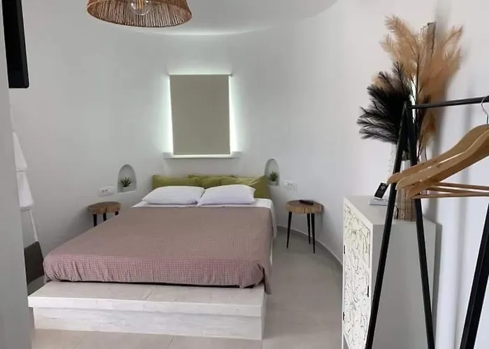 Este hotel de 3 estrellas se encuentra en Vlychada, a 1 km del centro de la ciudad. El hotel está a 6 km del Museo bodega Art Space en Vlychada. La zona también incluye lugares de interés natural como la Playa Roja, a 15 minutos en coche del Bed and Breakfast Thronos. La propiedad está a un corto paseo de la parada de autobuses Vlychada. El bed and breakfast en Vlychada está a 5 km del Aeropuerto Internacional de Santorini.